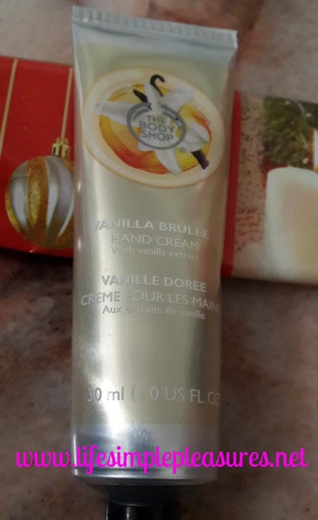 Well, I got it partly right, for it was something that smells yummy and is good for the hands and is…The Body Shop’s Vanilla Brulee Hand Cream! Yahoo..I love vanilla! My poor hands need some loving after all that Christmas house-cleaning.