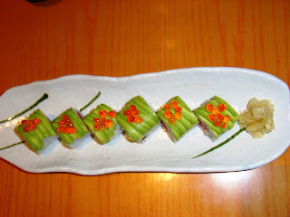 Then, the Autumn Roll! This was REALLY good! Too bad greedy me forgot to take a side view picture. Inside the roll are salmon, crabmeat, mushrooms, and omelet topped with slices of wonderful avocado and ikura (salmon roe). Delish I must say! The seaweed, although soft (not the crispy type), was so easy to bite through it just melted.